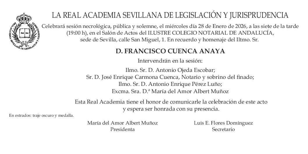 celebrará sesión necrológica, pública y solemne, el miércoles día 28 de enero de 2026, a las siete de la tarde